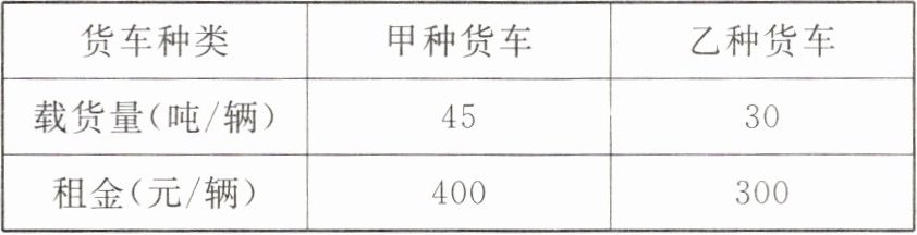 则租车方案为:甲种货车4辆,乙种货车2辆;甲种货车5辆,乙种货车1辆;甲种货车6辆,乙种货车0辆.