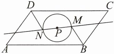 4. 如图,点P为平行四边形ABCD的对称中心,以点P为圆心作圆,过点P的任意直线与圆相交于点M,N。则线段BM,DN的大小关系是(