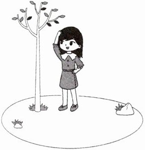 树>小女孩>旁边的矮植物(答案合理即可,因为图中植物种类有限,主要依据高度直观判断)