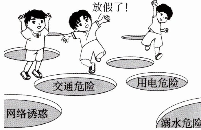 四、结合右边漫画,说说我们应如何健康快乐地度过假期。