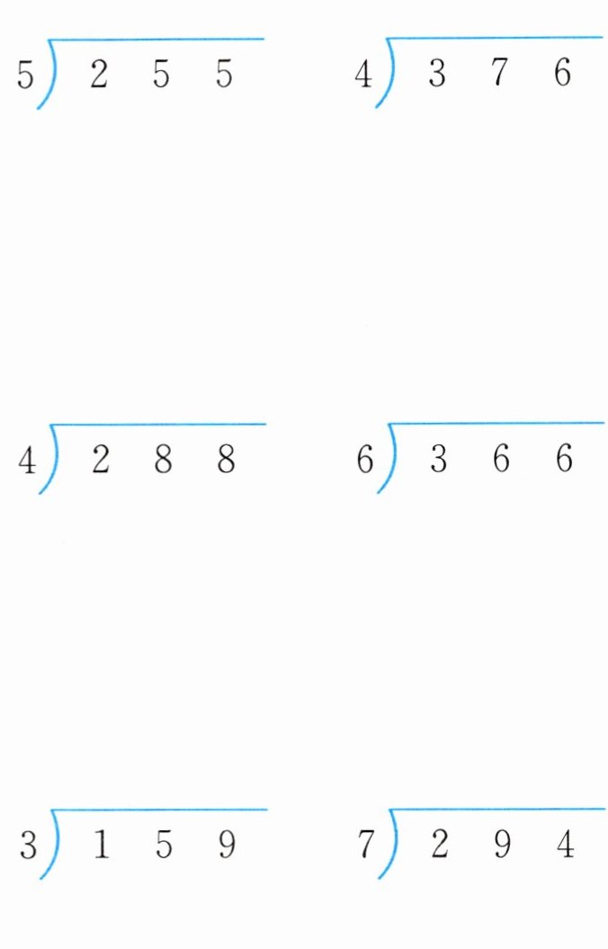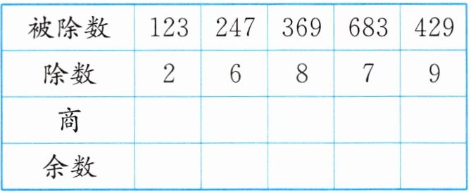 【答案】:$283÷3 = 94\cdots\cdots1$;$452÷7 = 64\cdots\cdots4$;$368÷6 = 61\cdots\cdots2$;$378÷8 = 47\cdots\cdots2$