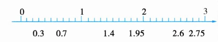 (2)$0.3$在$0$后面第$3$小格;$0.7$在$0$后面第$7$小格;$1.4$在$1$后面第$4$小格;$1.95$在$1$后面第$9$小格和第$10$小格中间(因为$1.9 + 0.05$,每小格$0.1$,$0.05$是半小格);$2.6$在$2$后面第$6$小格;$2.75$在$2$后面第$7$小格和第$8$小格中间。