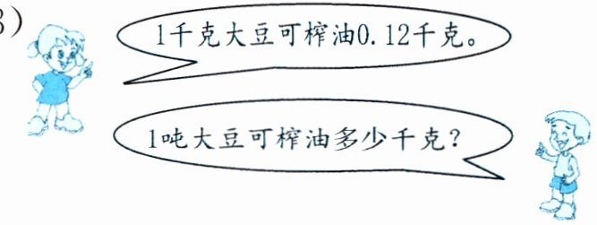 因为$1$吨$ = 1000$千克,$1$千克大豆可榨油$0.12$千克,所以$1$吨大豆可榨油$0.12×1000 = 120$千克。