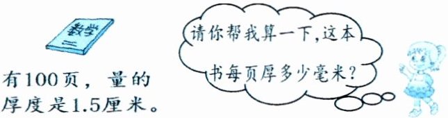 已知书有$100$页,那么每页的厚度为$15÷100 = 0.15$毫米。