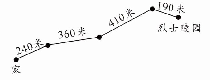 3. 清明节小龙去烈士陵园扫墓,下面是他出行的路线。小龙从家到烈士陵园共用了半个小时,平均每分钟走多少米?
