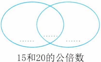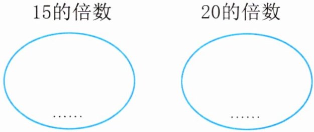 3. 按从小到大的顺序,将 15 和 20 的倍数、公倍数填在圈里,再找出它们的最小公倍数。