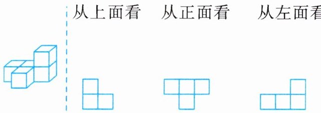 【解析】:通过观察立体图形,从上面看能看到横向排列的四个小正方形(类似“田”字去掉右边一竖的形状);从正面看能看到左边上下两个小正方形,右边一个小正方形;从左面看能看到右边上下两个小正方形,左边一个小正方形。