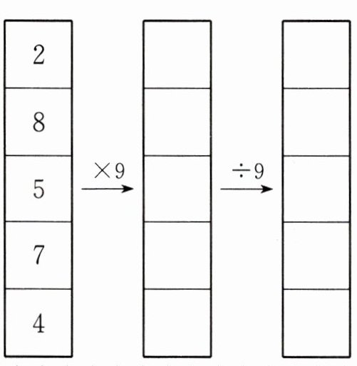 【解析】:根据乘法和除法的运算规则,分别计算每个数与$9$相乘以及所得结果再除以$9$的值。