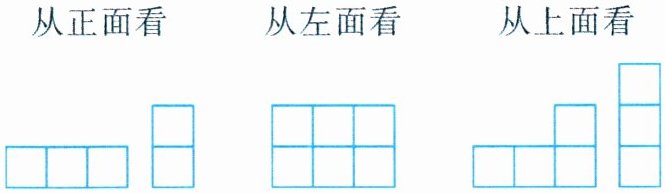 搭成的实心模型,从正面、上面和左面观察,看到的分别是下面三个图。这个实心模型共由