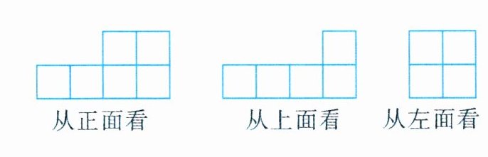 (4)根据下面从不同方向看到的图形摆一摆,看看用10个同样的小正方体如何摆放才能达到这样的效果。