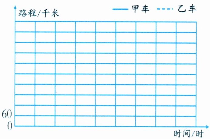 4. 两辆汽车行驶时间与路程的关系如下表,观察其中的规律填写表格,再根据下表的数据,在下图中绘制复式折线统计图。
