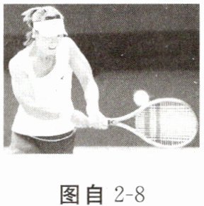 11. 如图自2-8所示,用球拍击球时,如果以球为研究对象,施力物体是____,受力物体是____。球被打出去,由于受____作用而落向地面。