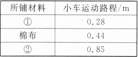 (2)实验过程中,应将毛巾、棉布、木板平整地铺在____(选填“AB”或“BC”)段,表格中①处所铺材料为____,②处所铺材料为____。