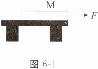 3. 如图6-1所示,水平桌面上有一建筑用砖M,右端与桌边相齐,在水平力F的作用下,沿直线向右匀速离开桌边。在掉下去之前,下列说法正确的是()。