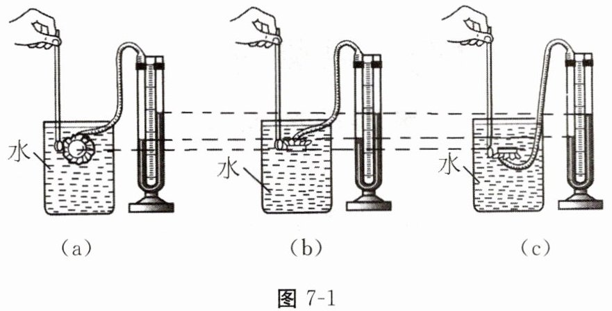 通过图7-1所示的实验可以观察到:同种液体内部向各个方向都存在压强,同一深度,向各个方向的压强____。