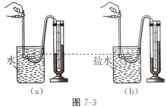 (3)如图7-3所示,不同液体的同一深度,液体压强____。深度相同时,液体密度越大,压强____。