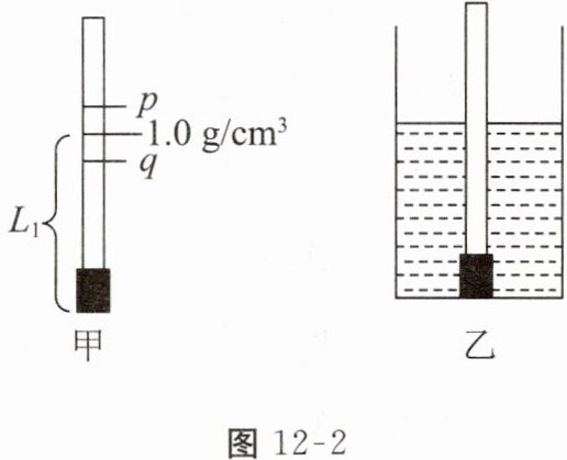 2. 国庆假期学校开展自制科学仪器的科学竞赛,妹妹学习完浮力后在家自制密度计,并在家完成了水的密度的标注,如图12-2甲所示。