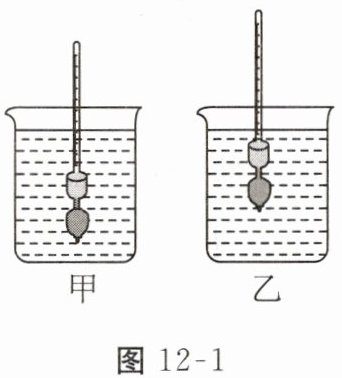 1. 如图12-1所示是用同一支密度计测量甲、乙两种液体密度时的情景,相同的两烧杯中液面相平。下列说法正确的是()。