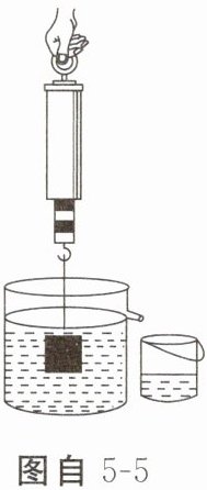 7. 如图自5-5所示,在溢水杯中装满水,将挂在弹簧测力计下的铁块缓慢放入水中,从铁块下表面刚刚接触水面直至弹簧测力计示数为零的过程中()。