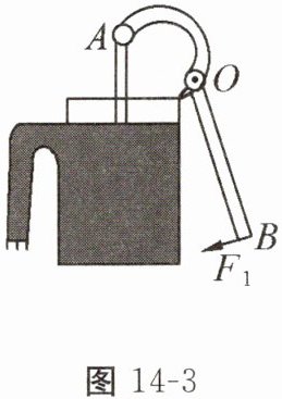 4.图14-3所示是活塞式抽水机,AOB是一杠杆,在图中作出阻力$F_{2}$、动力臂$l_{1}$。