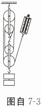 7. 用如图自7-3所示的滑轮组将总质量为500g的钩码匀速向上拉,不计摩擦和绳重,所用拉力F为1.1N,则动滑轮的重力是______N,滑轮组的机械效率为______(精确到0.1%);若用此滑轮组提升1000g的钩码,滑轮组的机械效率______(选填“不变”“变大”或“变小”)。(g取10N/kg)