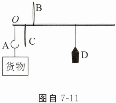 (3)实验结束后,小明联想到生活中的杆秤,如图自7-11所示,其主要结构由秤杆、秤钩A、提纽(B、C)、秤砣D组成,O点为刻度的起点。