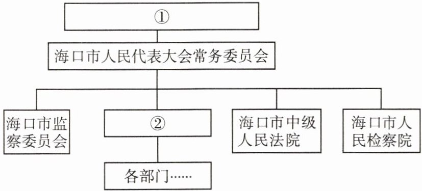 13. 下面是小刚绘制的海口市国家机关组织系统示意图。