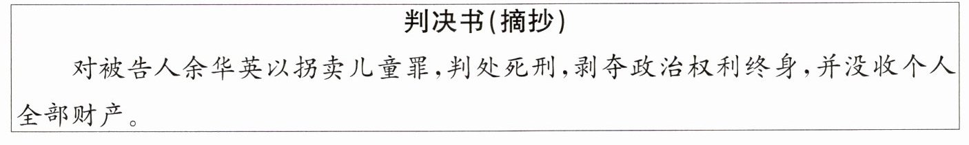 7. 2024 年 10 月 25 日,贵州省贵阳市中级人民法院对余华英拐卖儿童案作出重审一审判决。下列对判决书的解读,准确的是(