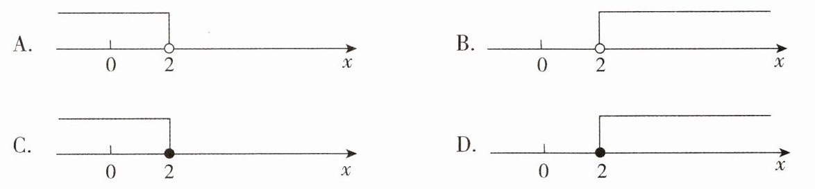4. 函数$y= \frac {2}{\sqrt {x-2}}$的自变量x的取值范围在数轴上可表示为(