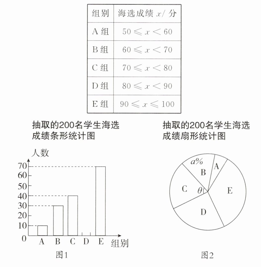 (2)在图2的扇形统计图中,记表示B组人数所占的百分比为a%,则a的值为____