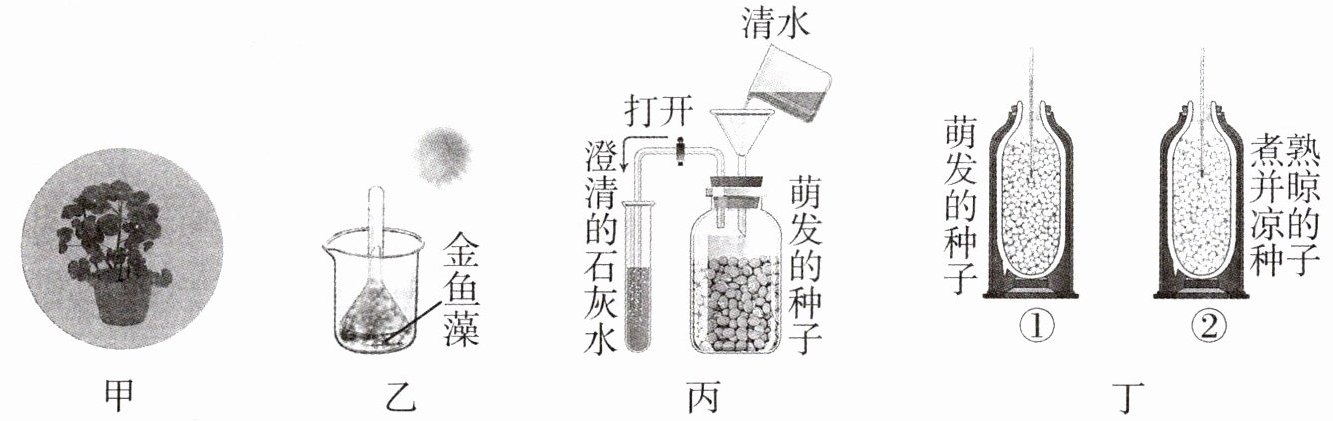 D. 丁装置实验中温度计示数上升的是②中温度计