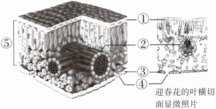 (2) 上表皮 叶脉 下表皮 气孔 叶肉