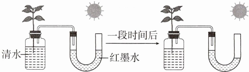 1. 植物体不断进行水的运输、利用和散失。小方制作了下图所示实验装置,检查装置密闭良好后放在适宜的环境中。一段时间后,U形管中的红墨水左侧液面高于右侧(如图所示),出现该现象的主要原因是枝条进行了(