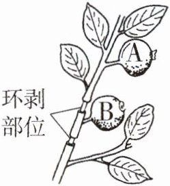 9. 俗语“人怕伤心,树怕剥皮”,右图为某植物枝条的示意图,枝条上长有大小相同的两个果实,已对枝条的两个部位的树皮进行了环剥。下列叙述正确的是(