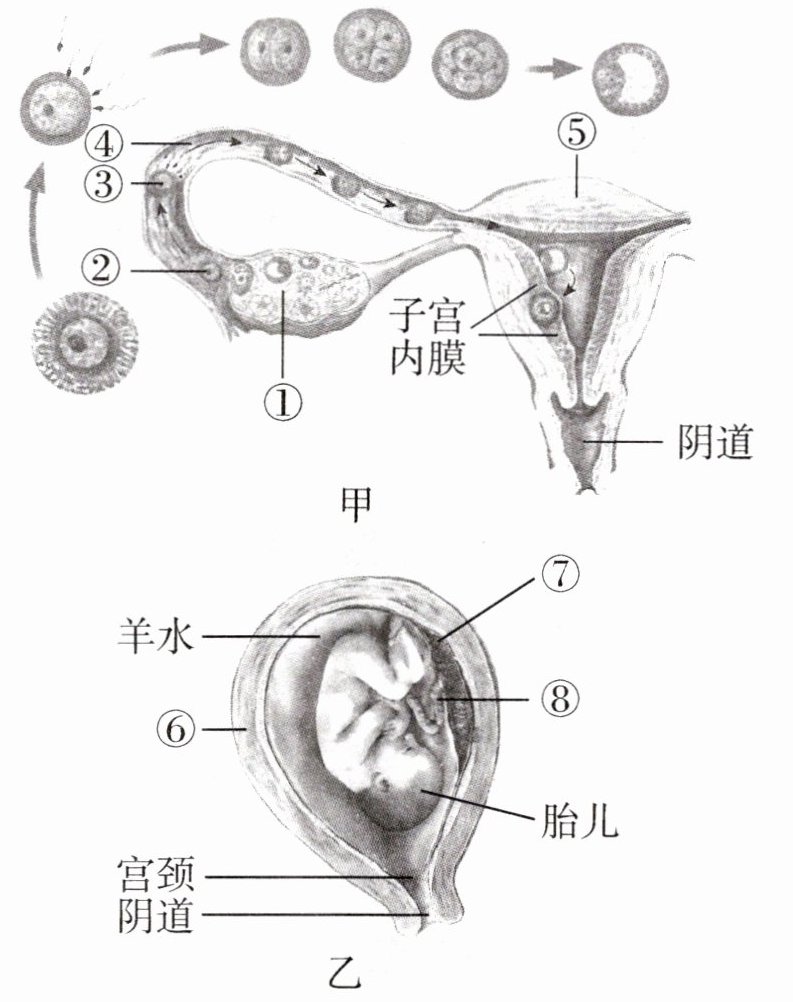 ,成为生命发育的起点。(2)图乙中,胎儿在⑥