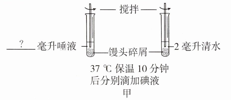 )A. 向第一支试管中加入 2 毫升唾液,模拟口腔消化过程