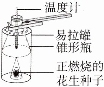 B. 实验时,要给锥形瓶加罩,让花生种子完全燃烧