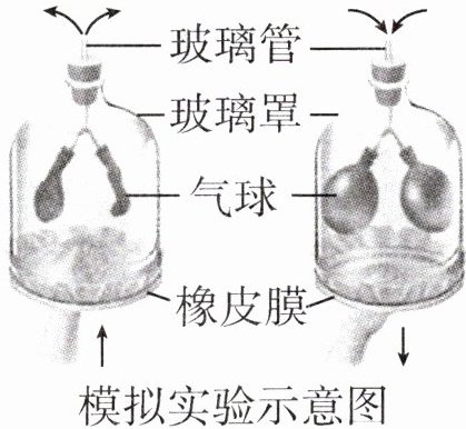 。(2)一只手拿着图示的模型,另一只手向上推橡皮膜,橡皮膜舒张,模拟