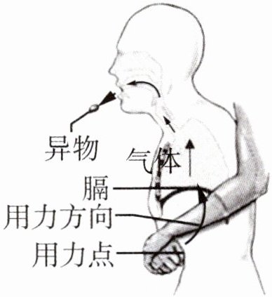 4. “海姆利希(也称海姆立克)急救法”是一种专门抢救急性呼吸道被异物阻塞的方法,如右图所示,施救时通过挤压被救者腹部使其膈顶部上升。下列叙述正确的是(