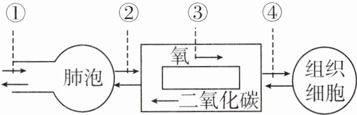 D. 过程④通过扩散作用实现,组织细胞内的二氧化碳浓度较血液内的低