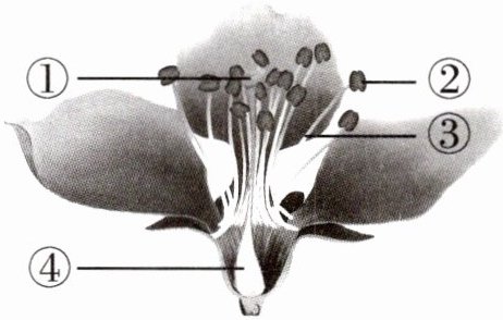 6. 桃花怒放千万朵,果实累累大又多。桃花经过传粉和受精作用,花会发育成果实和种子。右图中,能散放出花粉的是(