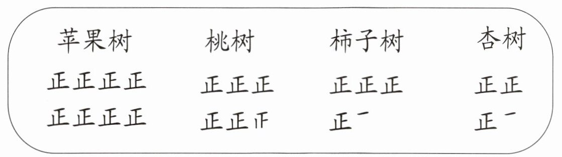 三、小兰统计了家里各种果树的数量。记录结果如下。