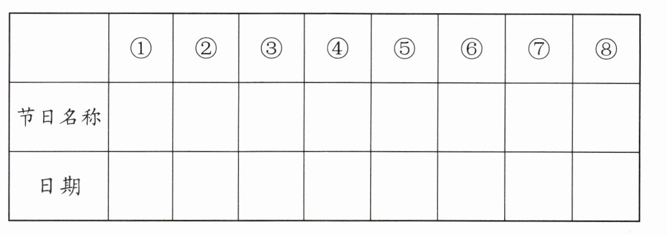 二、将下列节日按时间的先后顺序填在表格里。(只填字母)