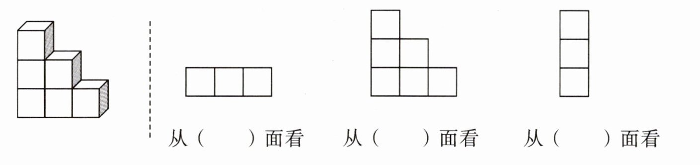 3. 下面右边的三个图形分别是从什么方向看到的?