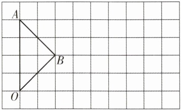 五、画出先将三角形AOB向右平移5格,再绕点B顺时针旋转$90^{\circ }$后的图形。(4分)