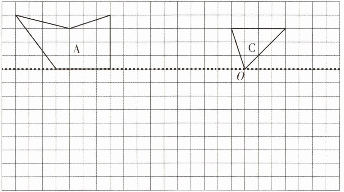 2. 画出图形C绕点O顺时针旋转$180^{\circ}$后的图形。(2分)