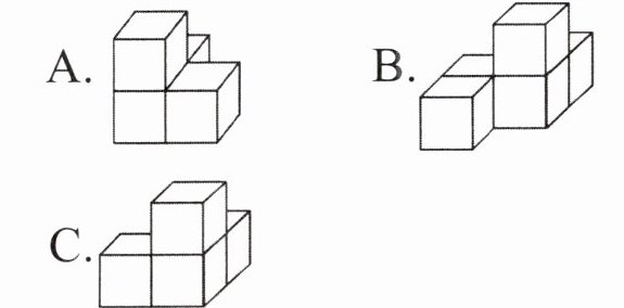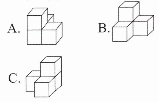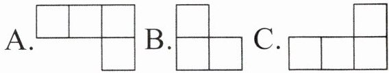 【解析】:从上面看这个立体图形,能看到$4$个小正方形,且是$3$个在一行(横向),$1$个在这一行最右边小正方形的正下方。选项$A$符合从上面看到的图形形状;选项$B$是从正面看可能得到的形状(有两层);选项$C$不符合从上面看到的形状。