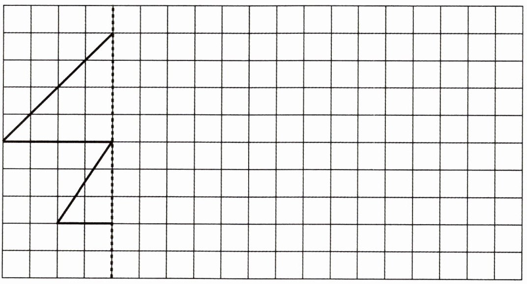 2. 画出下列轴对称图形的另一半,再画出整个图形向右平移10格后得到的图形。(4分)