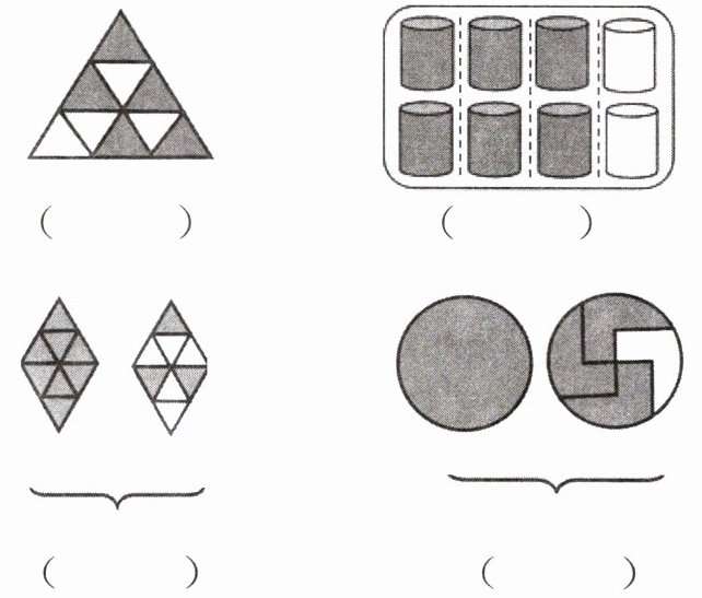 一、把一个图形看作单位“1”,用分数表示图中阴影部分的大小。