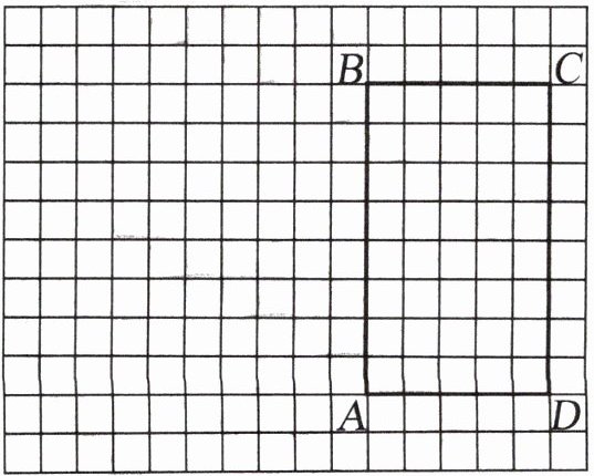 四、画出长方形ABCD绕点A逆时针旋转90°后的图形,并标上对应点的字母。